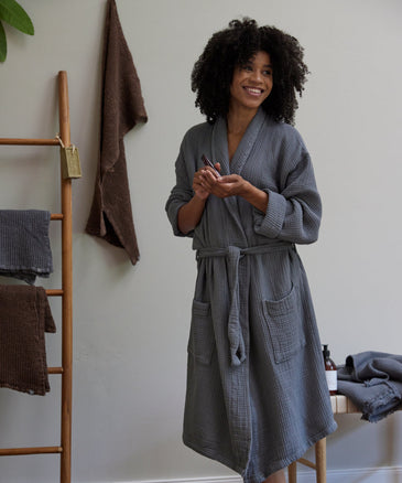 Endlich! Die Vollendung eines gelungenen Morgens! Zwischen Dusche und Kaffee gehört ganz einfach dieser unvergessliche Barfußmoment auf unserer kuschelig weichen Badematte Faia. Die wurde von unseren erfahrenen Partnern in Portugal aus 100 % Bio-Baumwolle in Frottierbindung gefertigt, wobei eine schlichte Bordüre die kostbare Naturfaser stilvoll umrandet. Zudem garantiert der OEKO-TEX Standard 100, dass keine Schadstoffe enthalten sind.