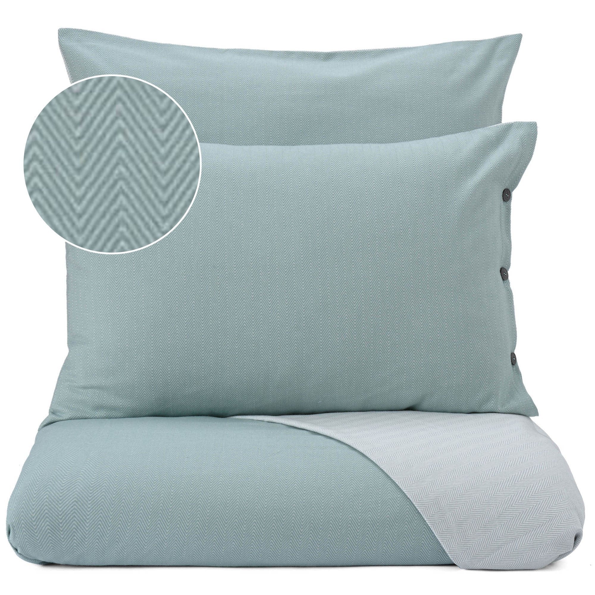 Unsere Flanell-Bettwäsche Agrela im zweiseitigen Design verspricht höchsten Schlafkomfort. Die weiche Bettwäsche wird von unseren Partnern in Portugal aus 100% feinster Baumwolle in Flanell verwebt und garantiert erholsame Stunden. Sie besticht außerdem durch ein zartes und stilvolles Fischgratmuster sowie eine dekorative Knopfleiste.